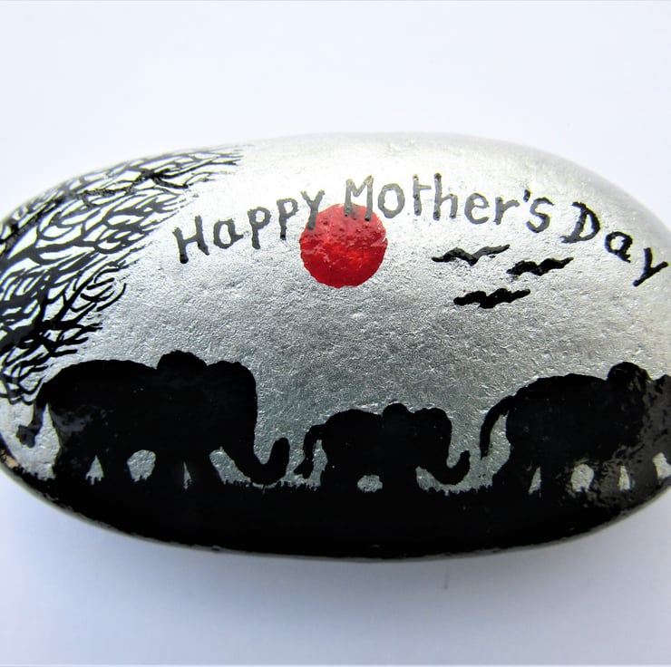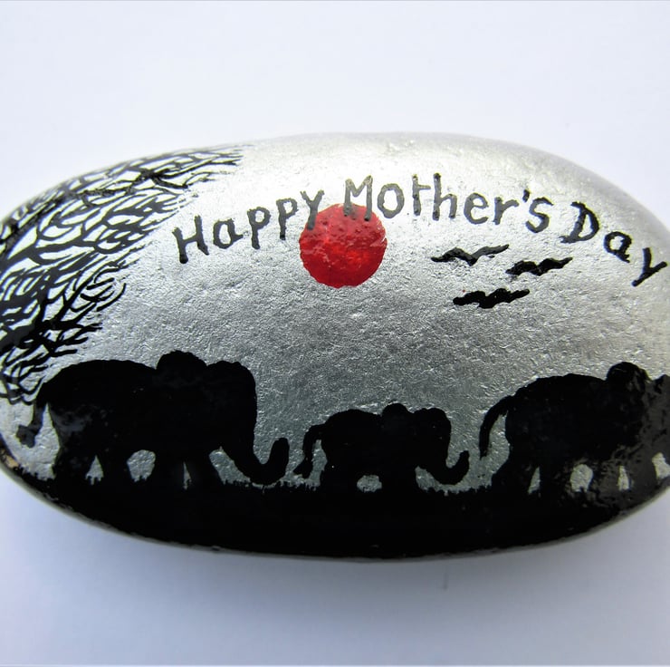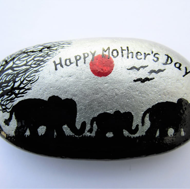 Mothers Day Elephant Gift - Original art painting on rock.