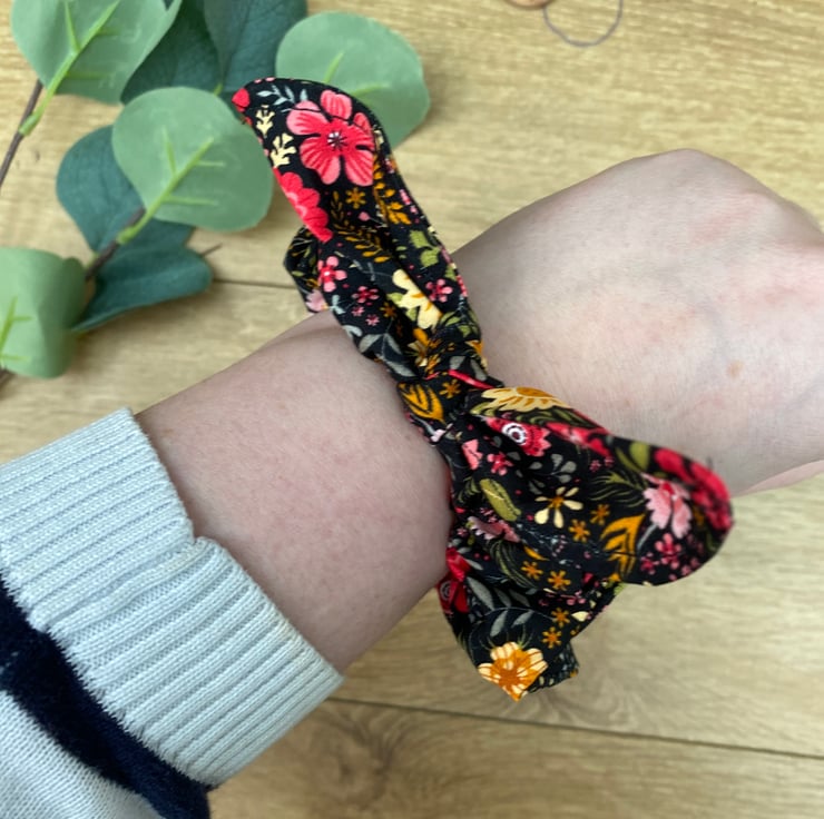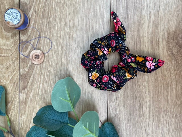 Black Flower Print Hair Tie, Scrunchie.