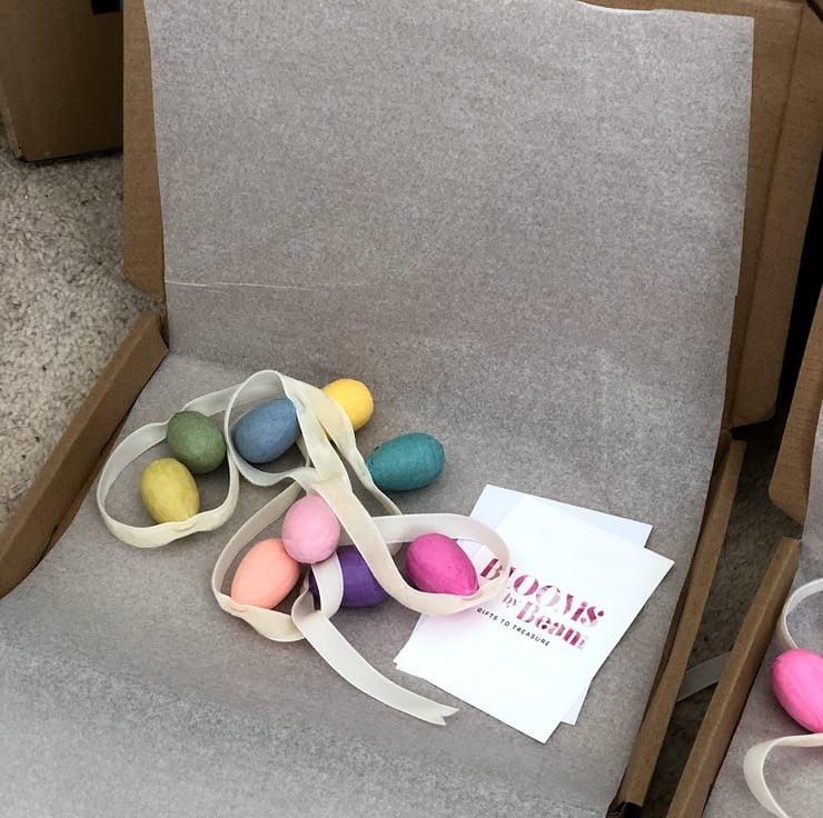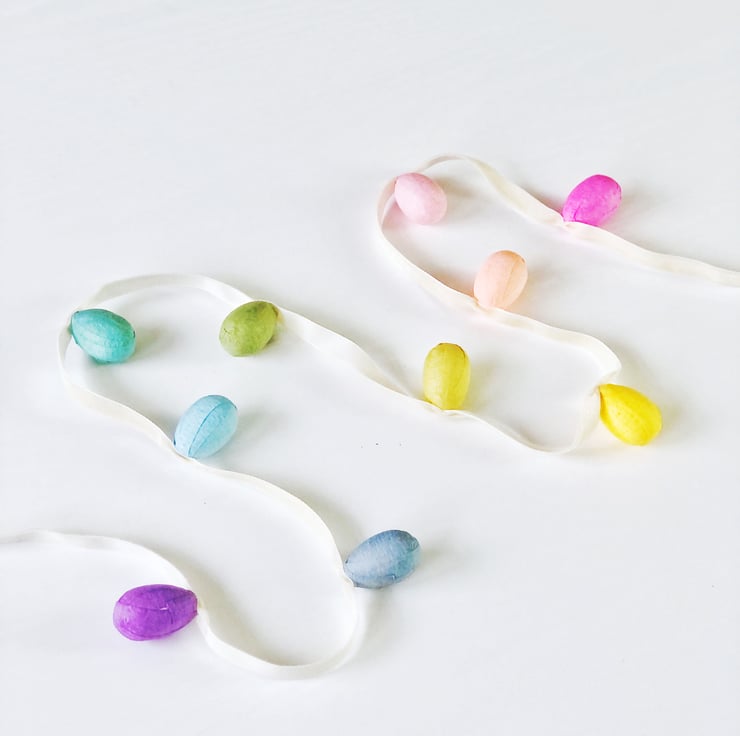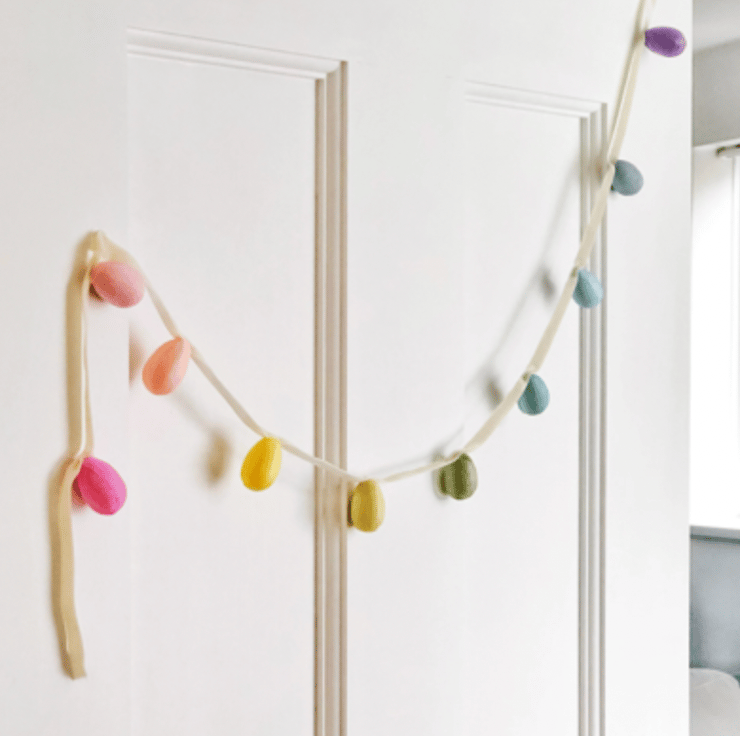 This Easter garland features delightful pastel rainbow eggs in a luxurious ivory velvet ribbon. It will give a charming welcome when hung on your doors especially during spring. It will also look fabulous hanging on your headboard in your bedroom or as a wall art in your living room or nursery. For your themed events, you can use this as a decoration on the stage, table centrepiece or even a photo booth prop.