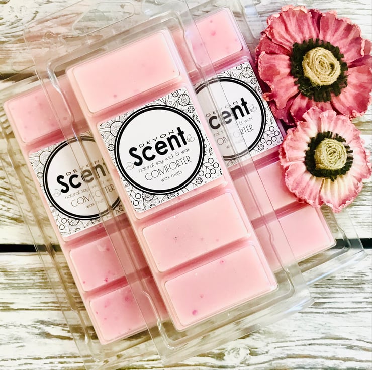 The scent from our Comforter Snap Bar Soy Wax Melts has a sweet mouthwatering fruity aroma with cherry supported by notes of raspberry, blackcurrant and watery black grape.