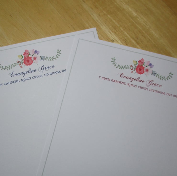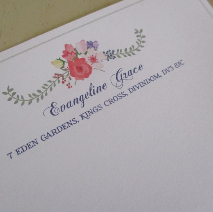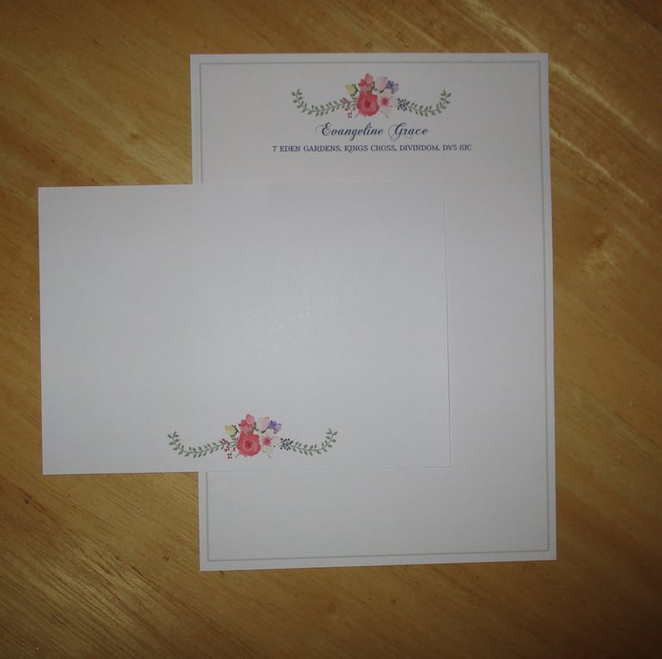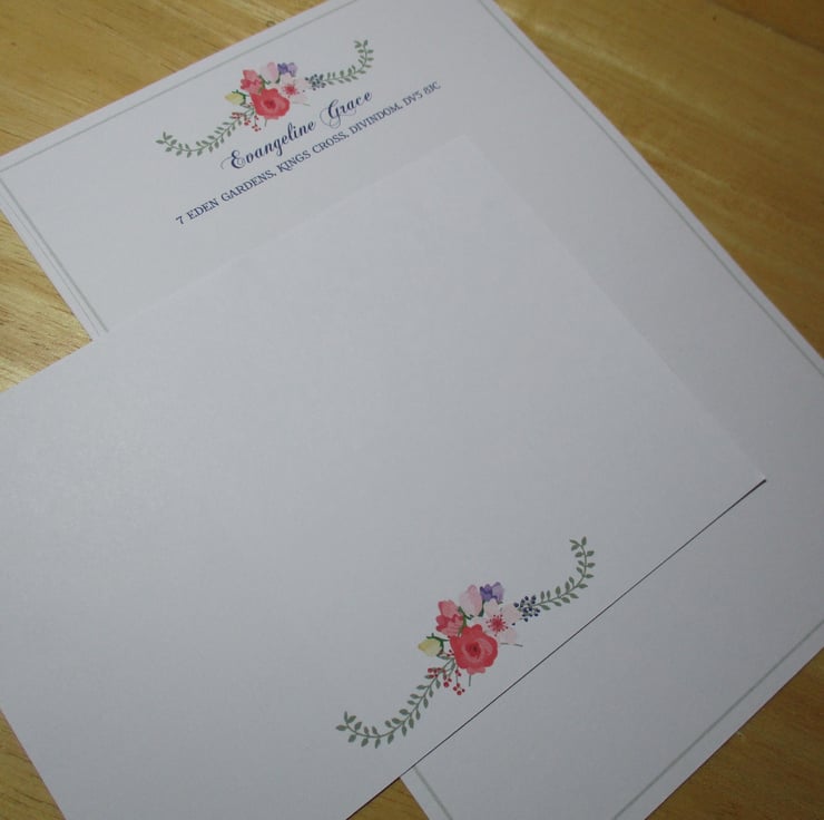 Floral garland design, personalised writing paper set - 15 Pieces.
