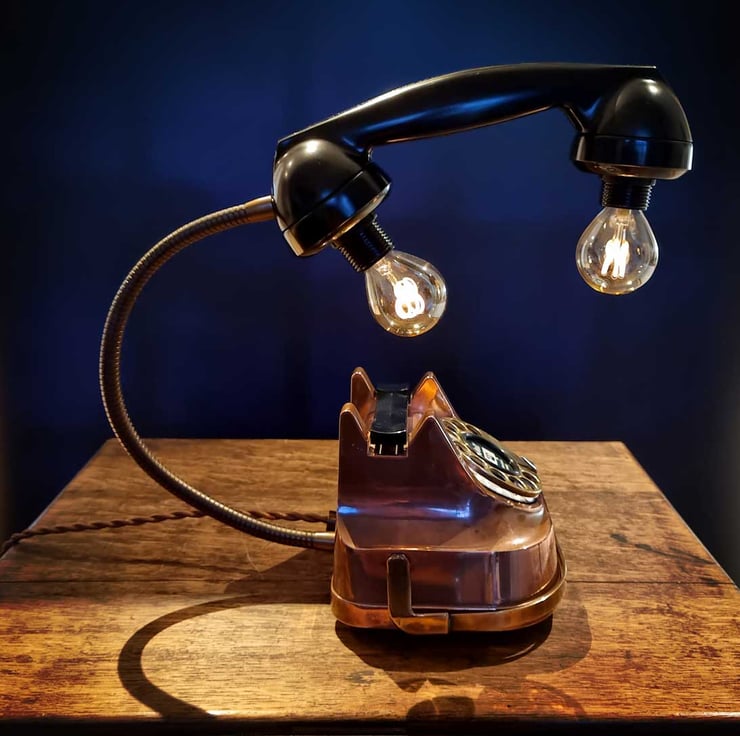 This old telephone has been stripped, cleaned, and polished to remove decades of dirt and grime, and has two vintage style Edison LED lights with old style spiral filaments producing a lovely warm glow. The telephone lamp also has an antique metal style flexible gooseneck arm so that the handset can be repositioned.