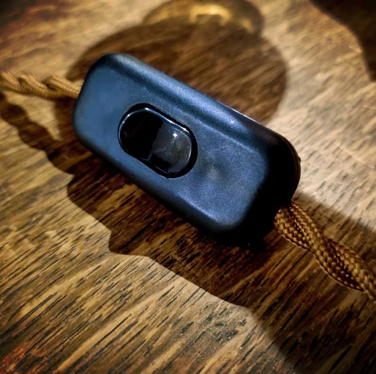 In keeping with the retro style, the phone lamp also comes with a vintage style brown braided cable with an inline switch and a British 3amp plug.