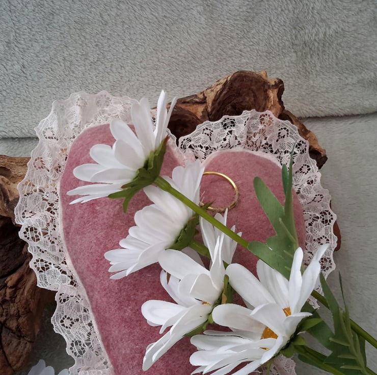 A brass ring is attached to the back to enable the heart to be hung on a wall but it looks lovely laid as a decorative piece.