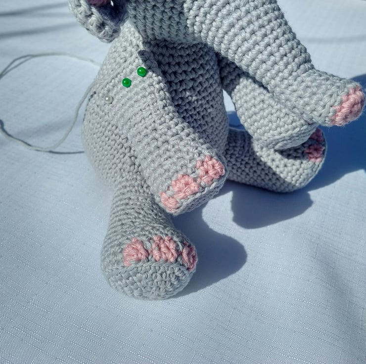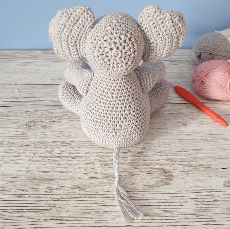 The 8 page pattern is intermediate skill level and uses UK terminology – if you would prefer US terminology, please message me. It is clear to follow with detailed instructions and lots of pictures for step by step making and assembly. There are also picture instructions for colour change and back loop only.