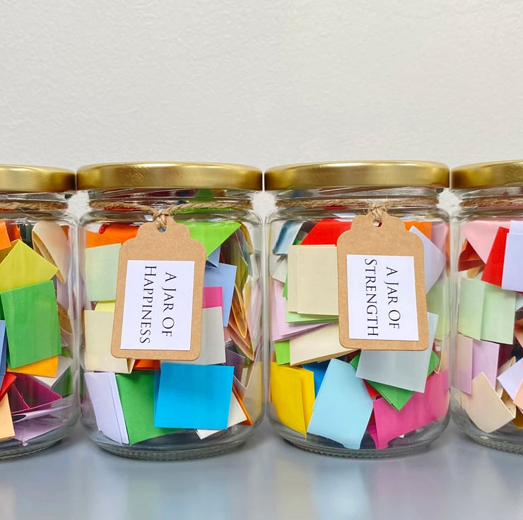 - A Jar of Love. The quotes are printed on white card, not different colours.