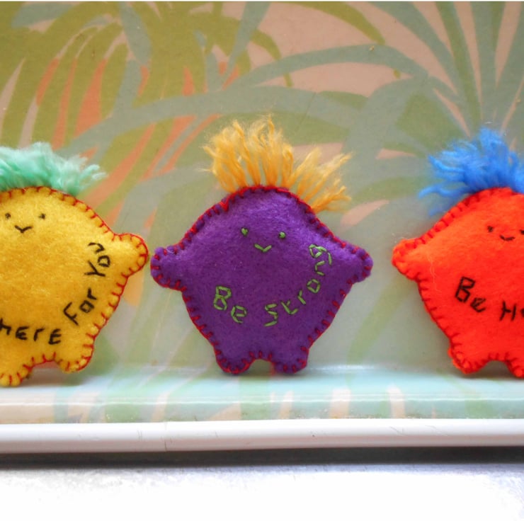 I wanted to create something that would make people feel better. Each pebble is handmade using quality felt and filled with polyester toy stuffing.