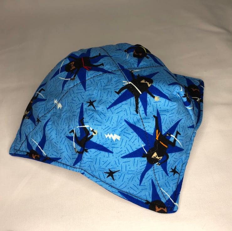 Made from cotton fabric and wadding, it is machine washable but should not be placed in the microwave.