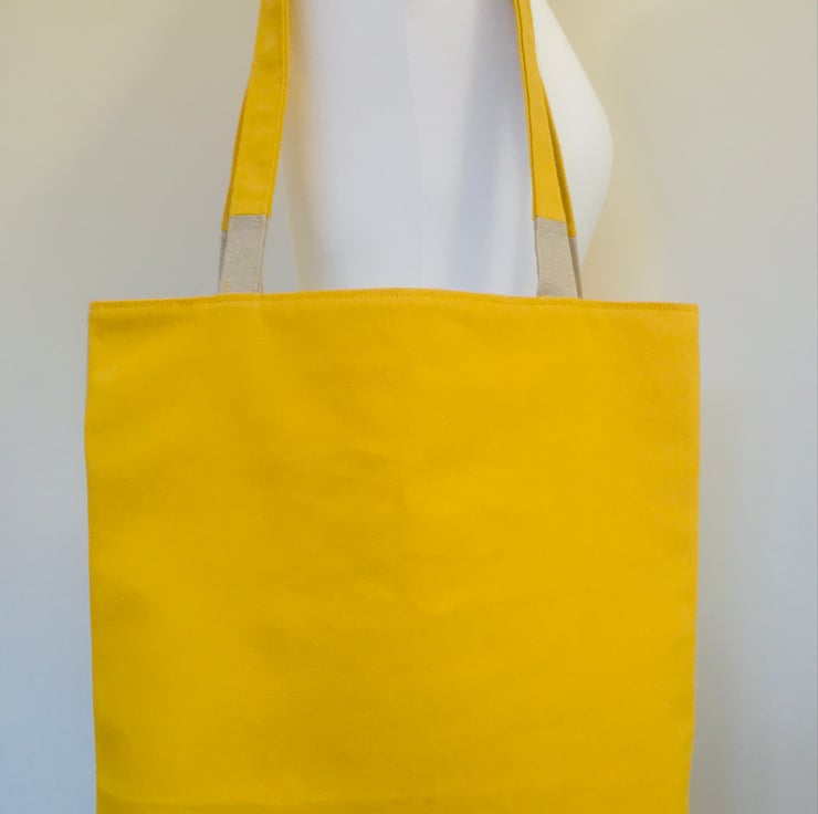 The back of the bag and the handles are made from a mustard yellow cotton canvas, which perfectly reflects some of the golden hues in the stags antlers and coat.