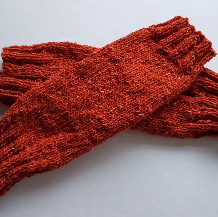 A delightful pair of wrist warmers - a stylish accessory that's perfect for those in between days. Hand knitted from a beautiful blend of cashmere and merino, these are designed not only to look great, but also to keep your wrists cosy and stop arm drafts! Measuring 24cm long by 9cm wide, these are designed for small adult hands and are recommended hand wash only.