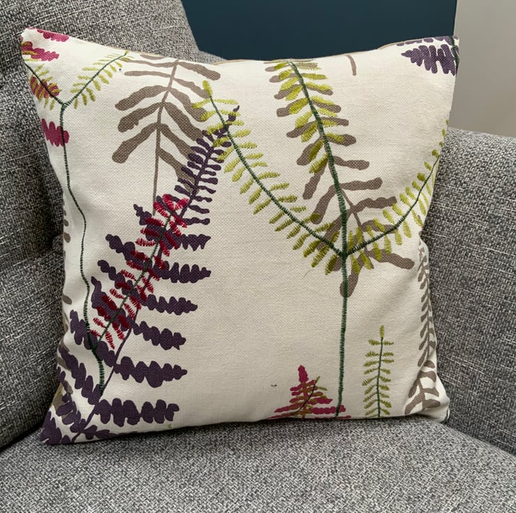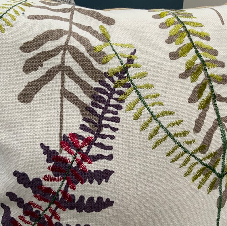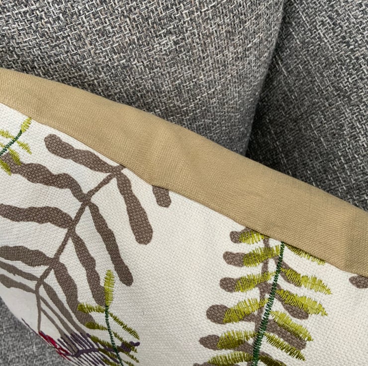 Printed and Embroidered leaf pattern front, khaki cotton back