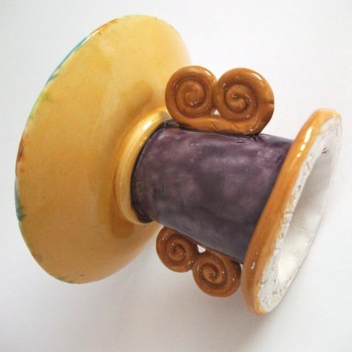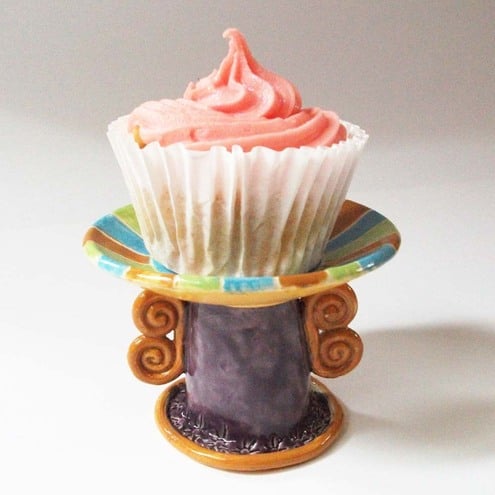 This brightly coloured plate on a stand is the perfect size for an individual cupcake or muffin. Ornate swirls meets bold spots and stripes - it's a real eclectic mix of styles.