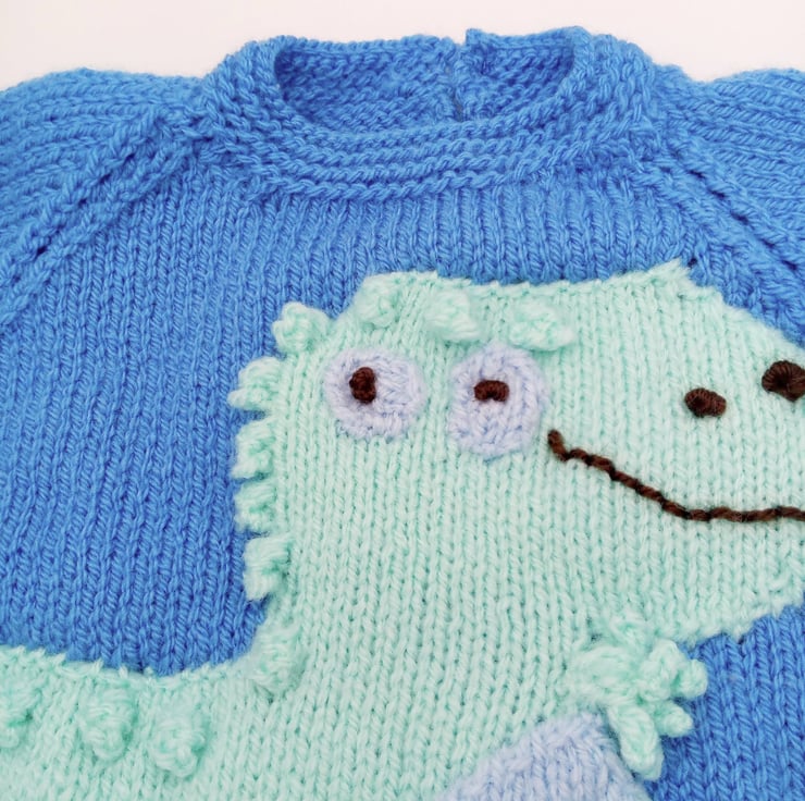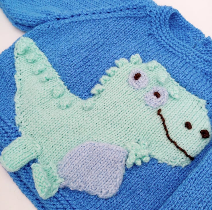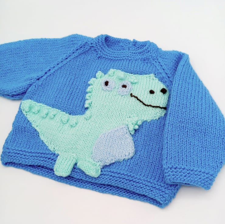 Novelty Round Neck Jumper with Dinosaur Motif for Babies and Small Children, Hand Knitted Jumper, Dinosaur Jumper, Baby Clothes, Children's Clothes, Baby's Jumper, New Baby Gift, Gift for Baby Shower, Birthday Gift
