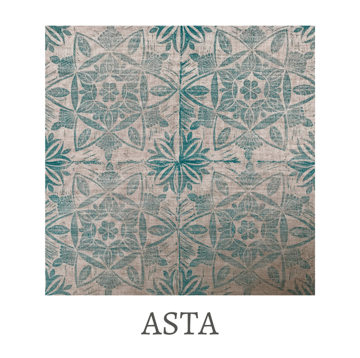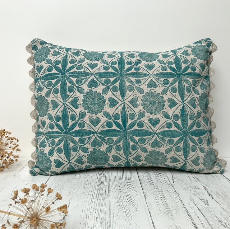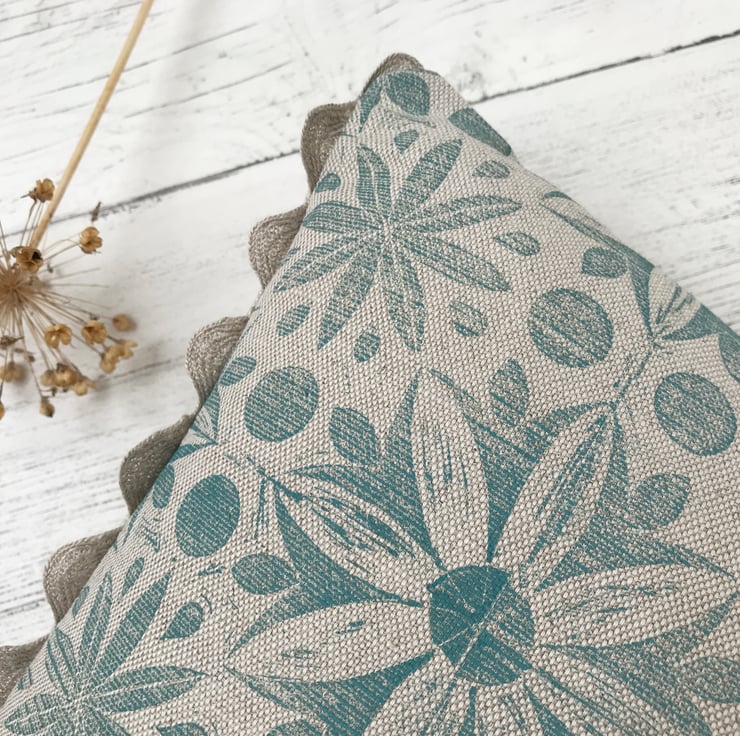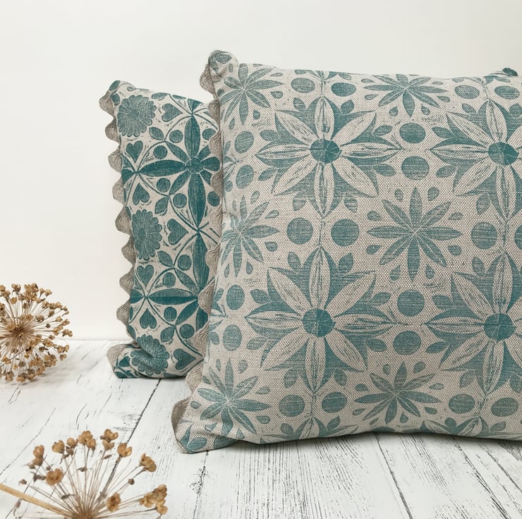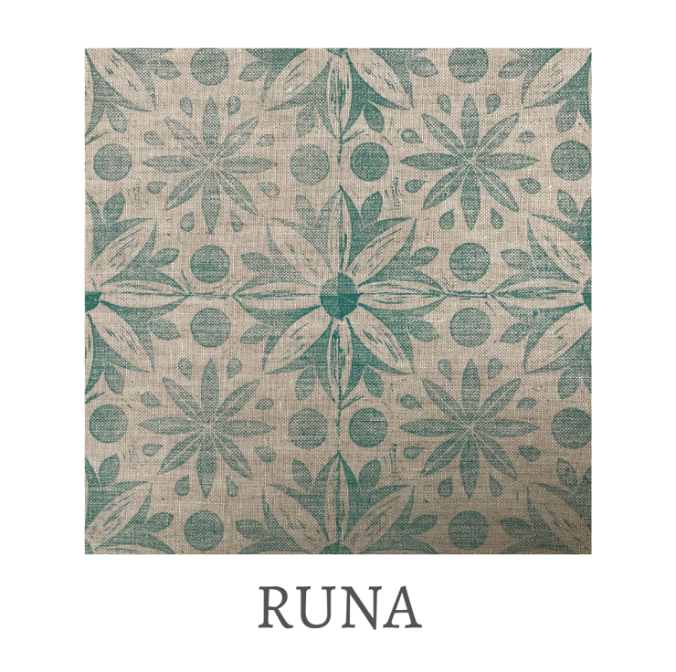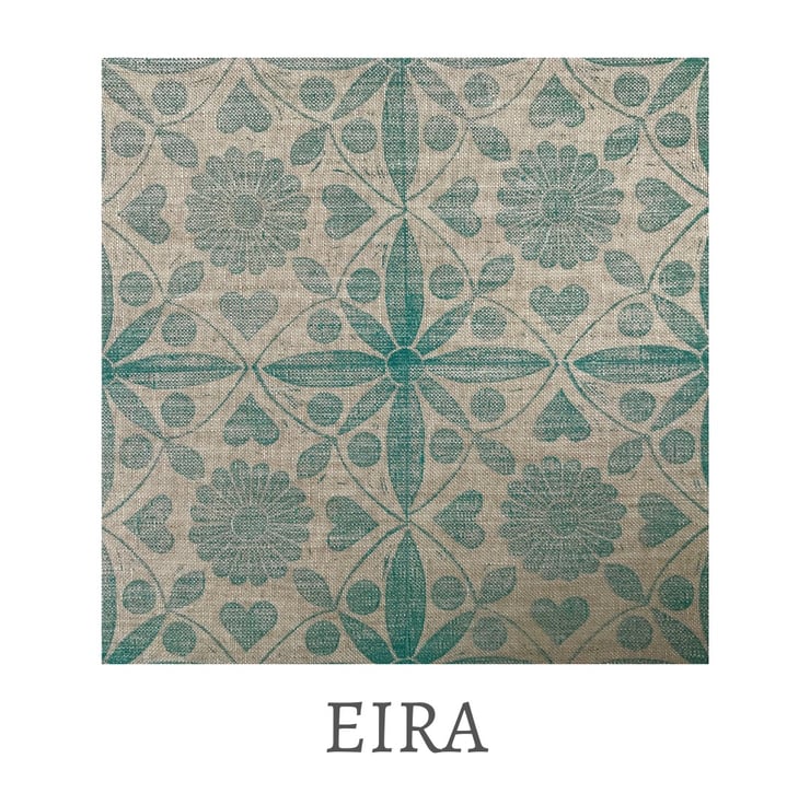 This unique design is block printed by hand, using Eco-Friendly inks onto natural Linen woven in Scotland