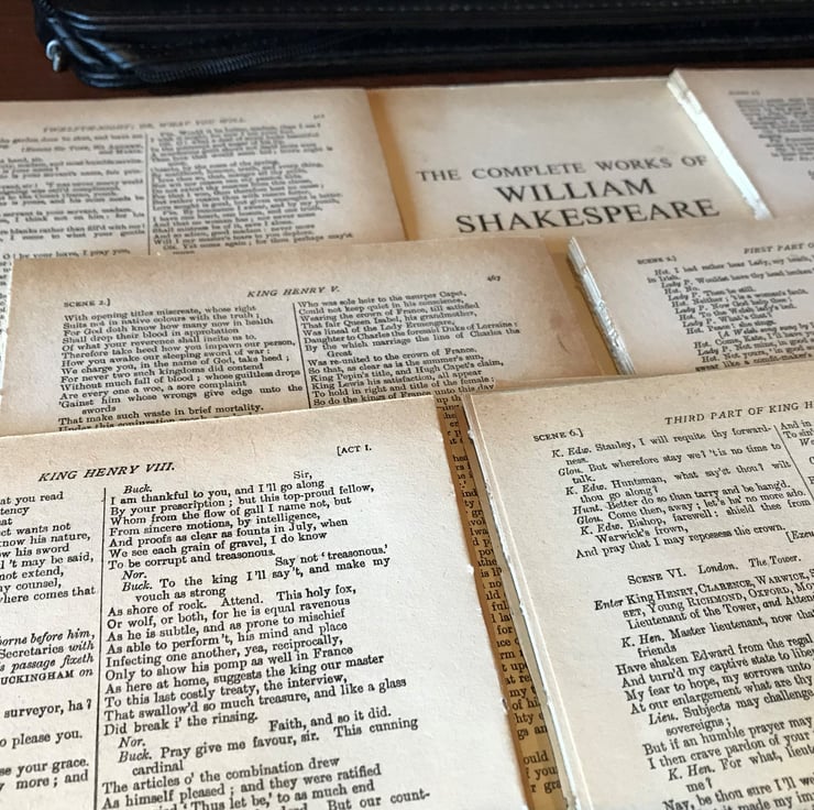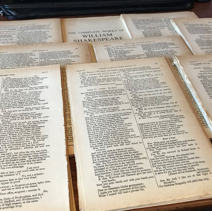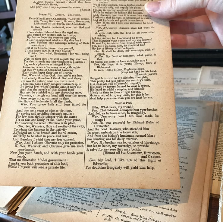The pack is made up of 20 pages from Shakespeare's plays. All the pages are vintage and therefore do have some evidence of wear and tear i.e. they are discoloured due to the age and some may have age spots. However, they look great and I love seeing them going on to get a new lease of life.