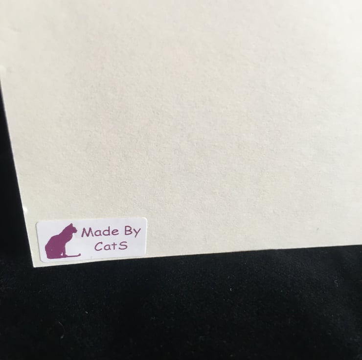 The back has a golden braid ribbon to finish off edge and the wee cat logo in corner.