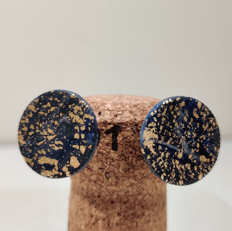 Hand made polymer clay earrings with marble effect and gold flakes. Small sized. Stud which can be painted with hypoallergenic coating on request for free. Please see all photos for close up detail. All products handmade therefore there may be minor imperfections. Each pair sold as seen, message for more