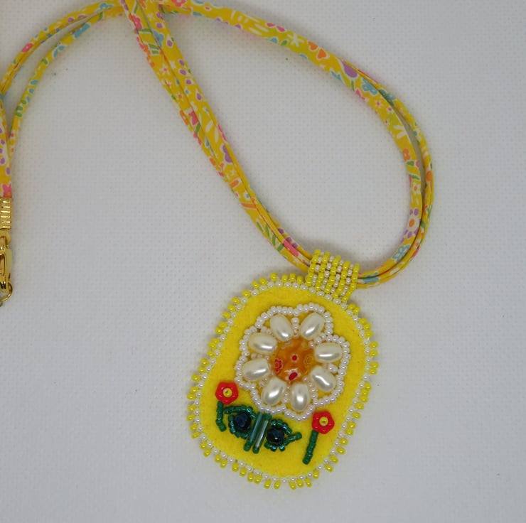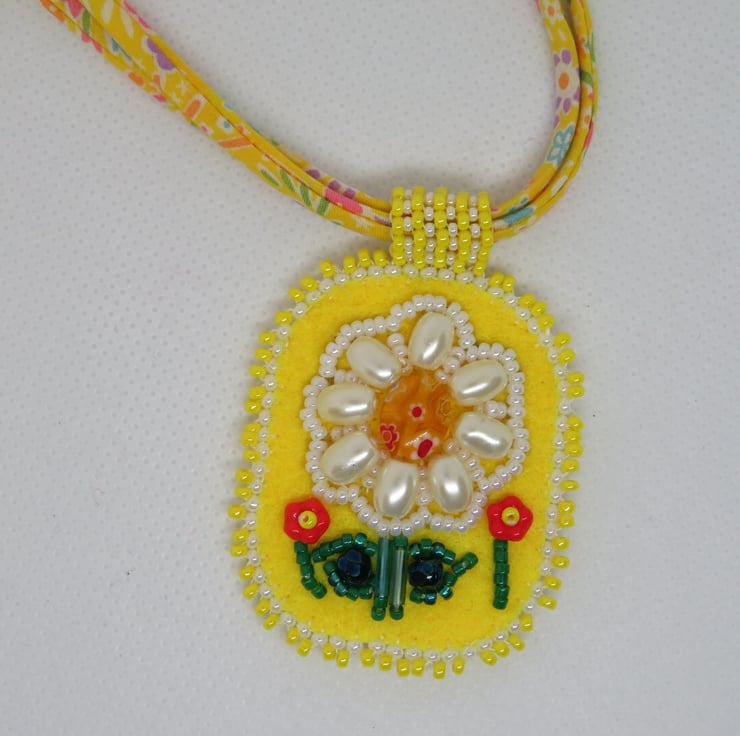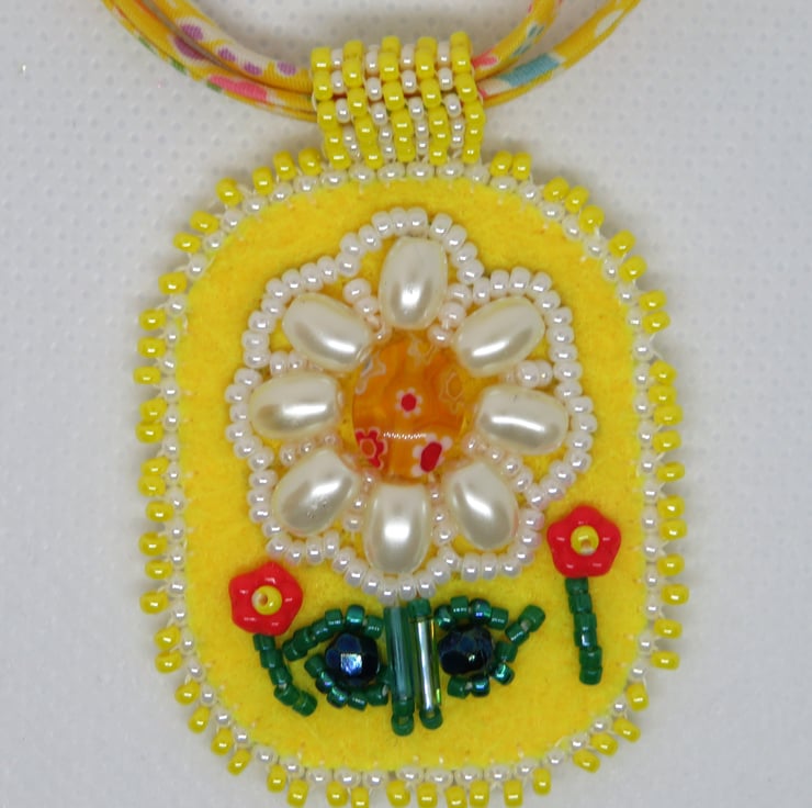 Love the colours in this bead embroidered pendant, guaranteed to bring a little sunshine into your life!