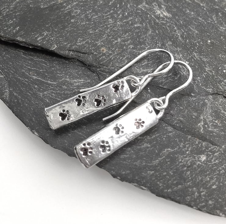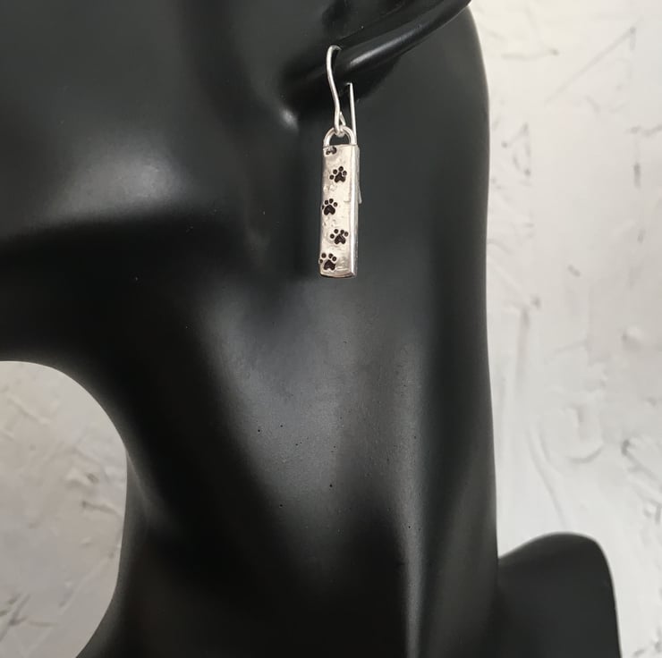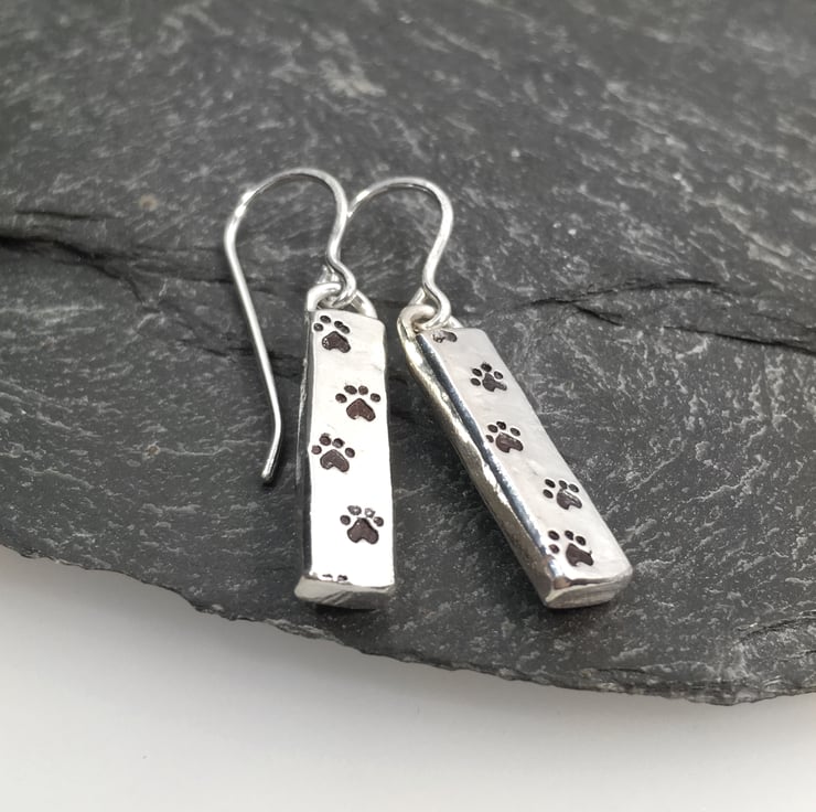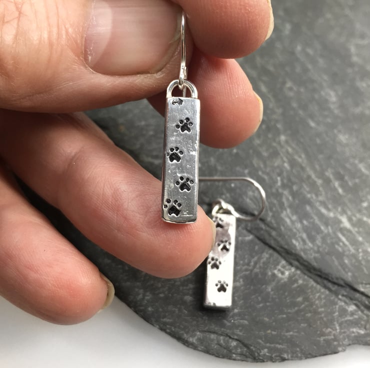 I have made these fun earrings by stamping little paw prints on solid chunky silver bars.