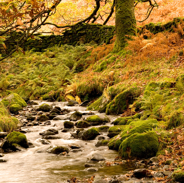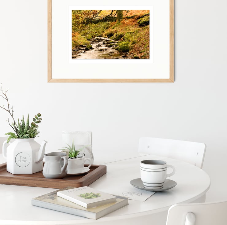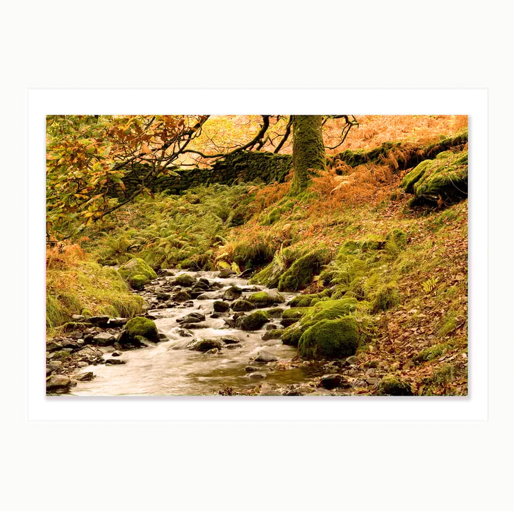 A beautiful mounted photograph of a bubbling brook in the beautiful autumn hills of the Lake District in Cumbria, UK. It was taken on the way to Easedale Tarn and is one of the many streams that flow into the tarn. An image to bring you closer to nature and the autumnal countryside.