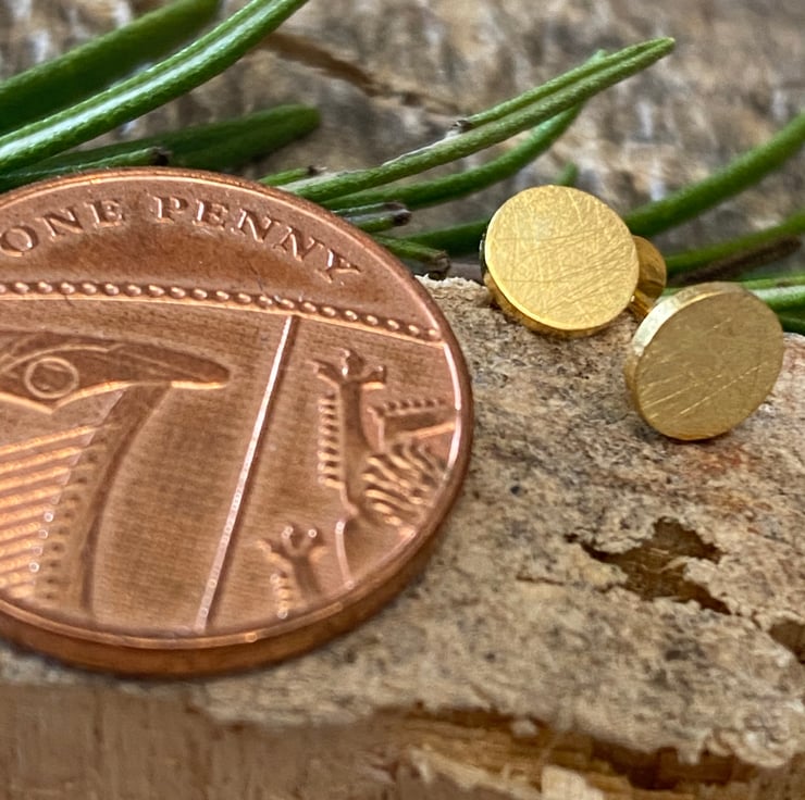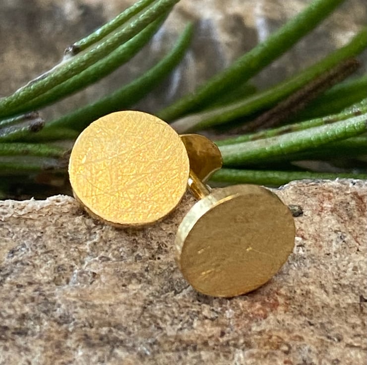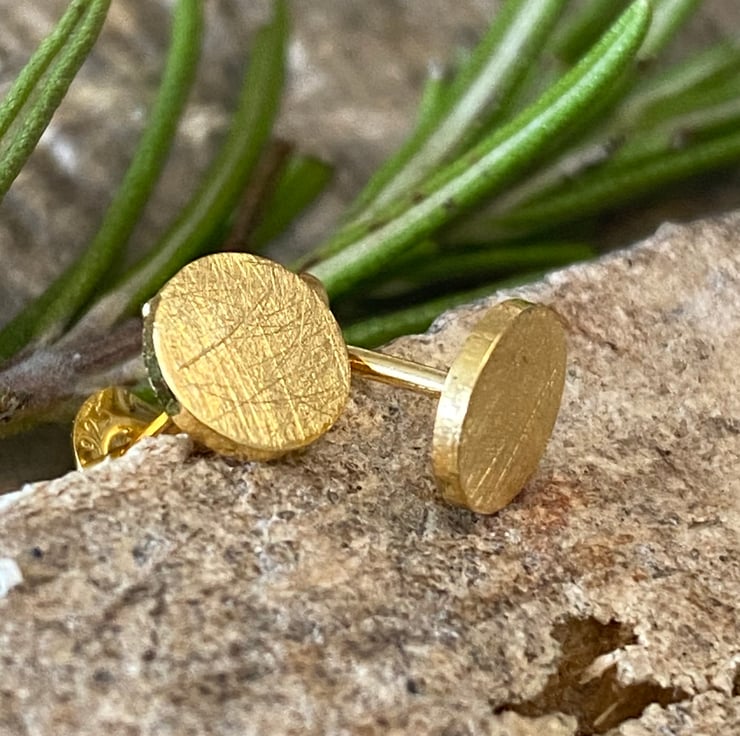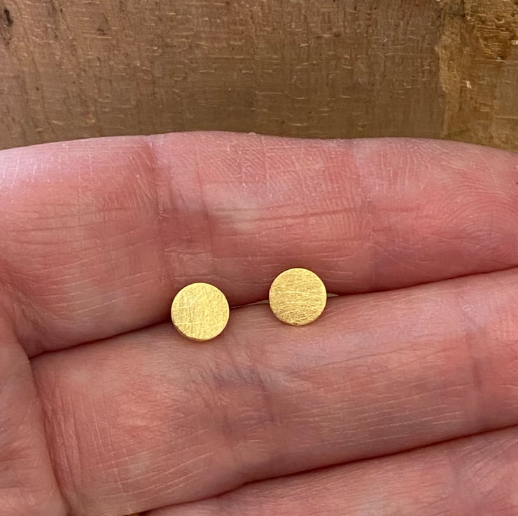 Brushed Gold Stud Circle Earrings, Gold Plated Solid sterling silver. Posts.