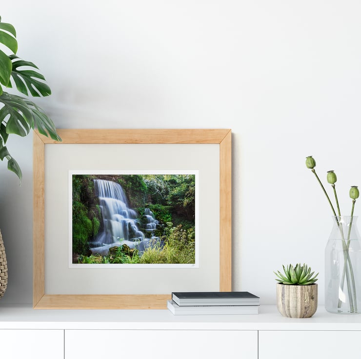 A beautiful and dramatic cascade of water in a secret woodland glen - this image is sure to bring the countryside right into your home! It makes the perfect gift for anyone with a love of the great outdoors.
