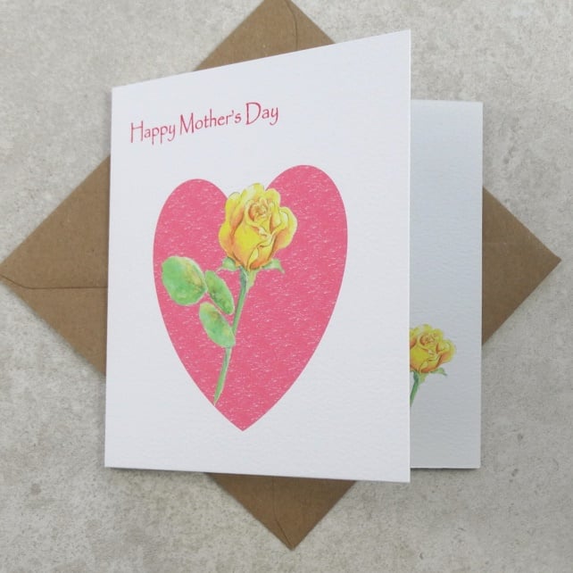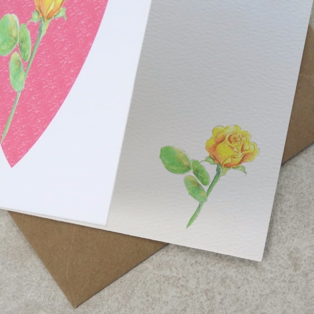This Eco Friendly Mother's Day card Rose Heart has been printed using my original artwork on to 100% recycled felted white 270g card and has been left blank inside for your own special message. This eco friendly felted white card has a lovely textured finish. Size 140 x 140 mm