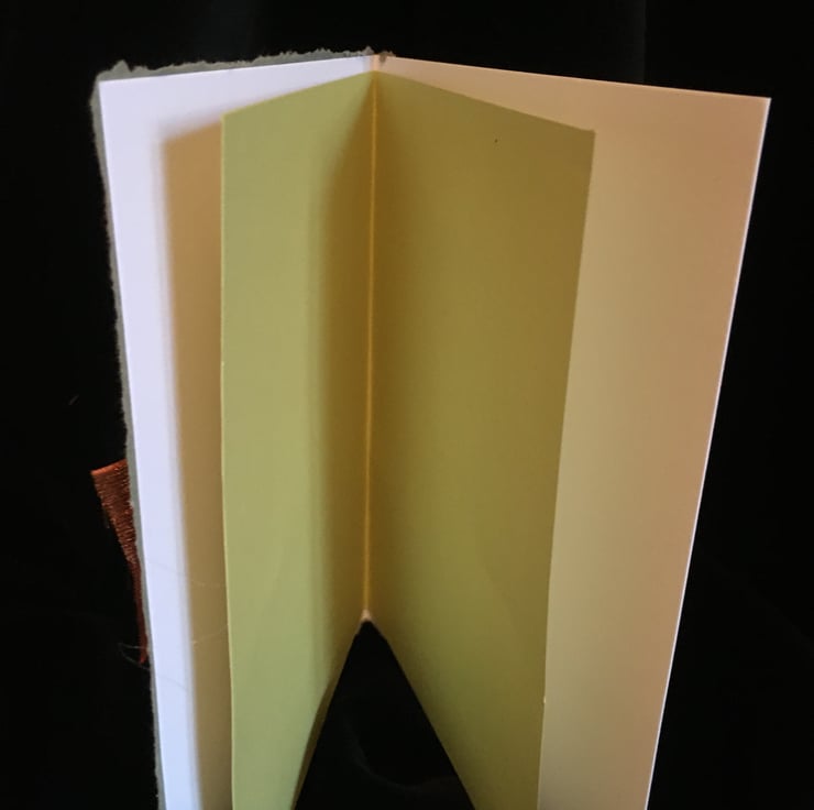 An orange ribbon lies across the card with a lemon ribbon on top and then a gold braid.