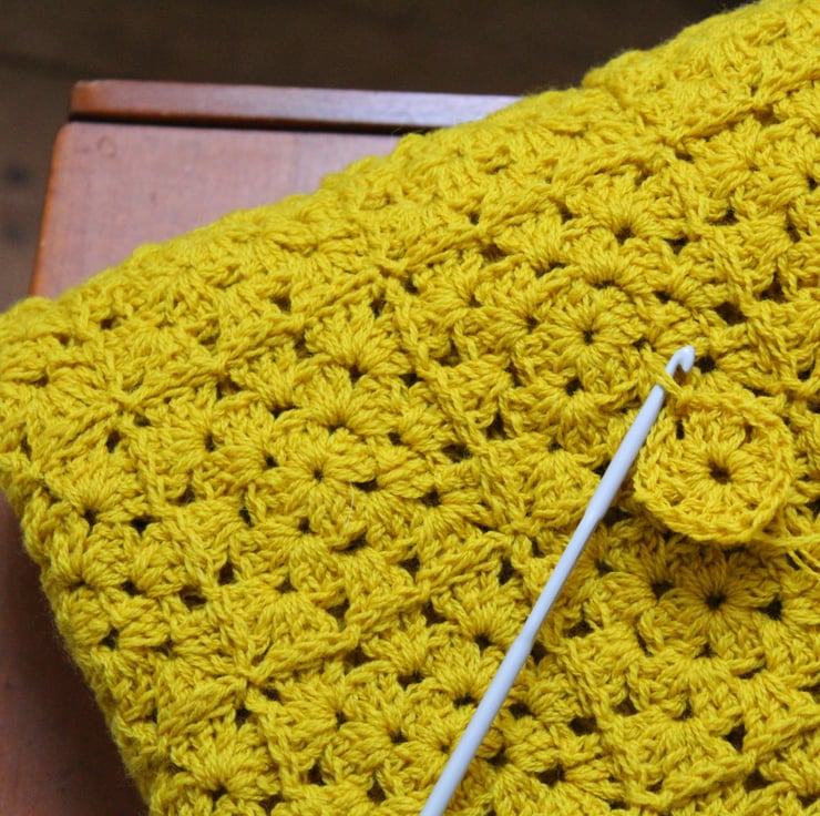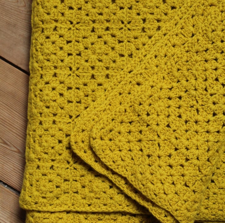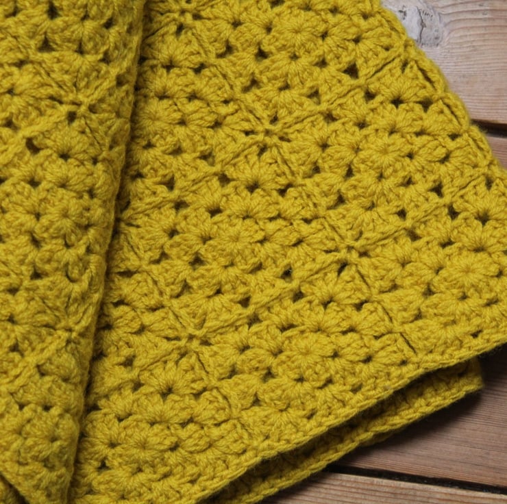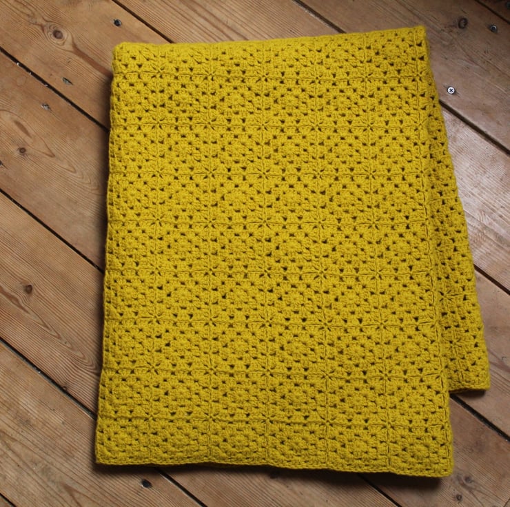 All my crochet blankets are made with two strands of 100% soft lambswool with this one in a golden yellow colour.