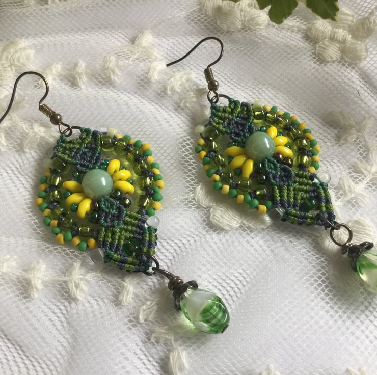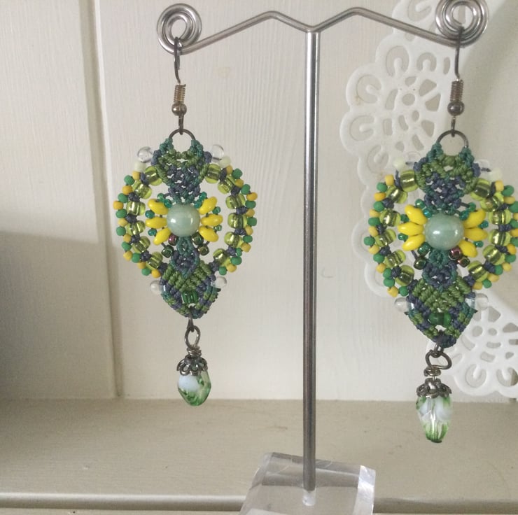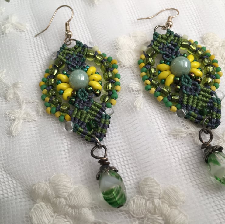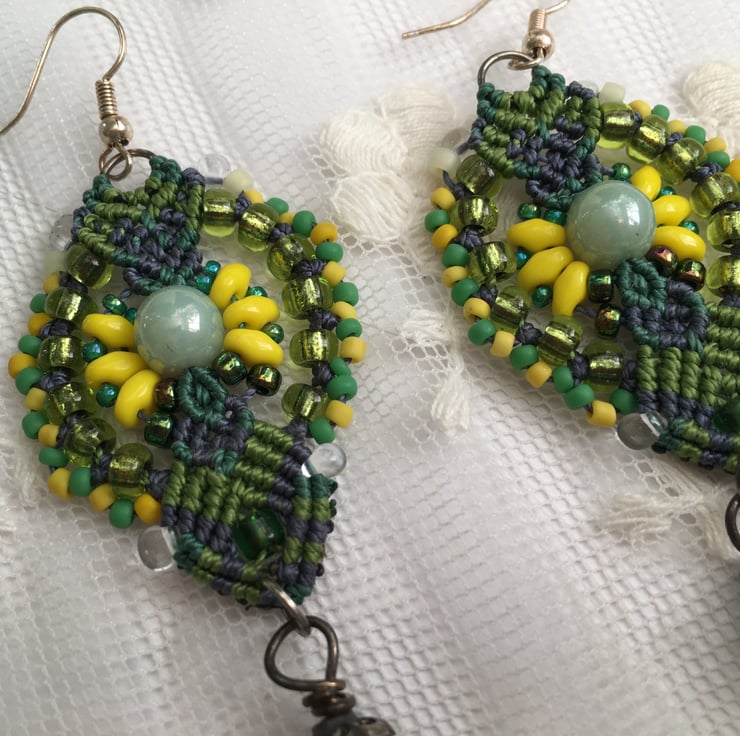 All the beads are glass and of the highest quality sourced from around the world. The beauty with macrame earrings is that they are so light you hardly notice you are wearing them so you get the wow factor without the weight.