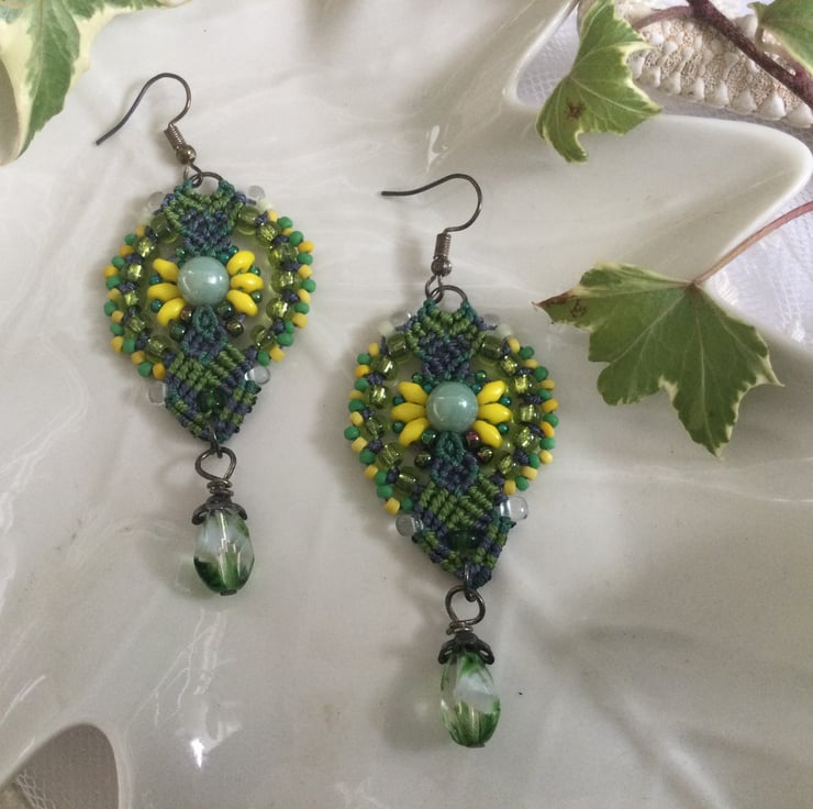 These earrings have a real feel of Spring about them in shades of yellow and green.
