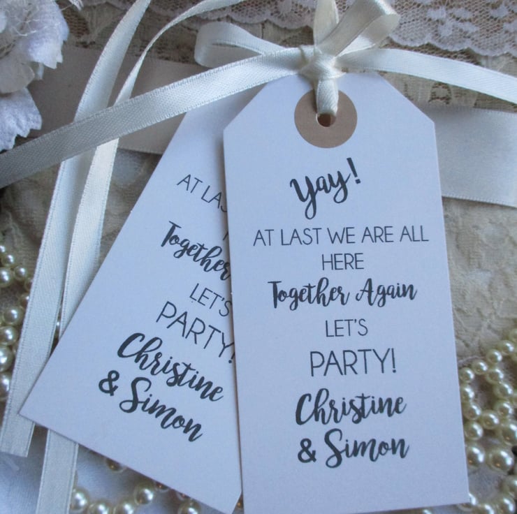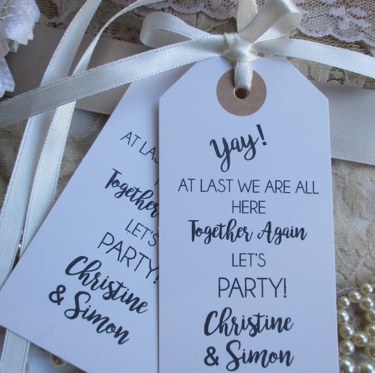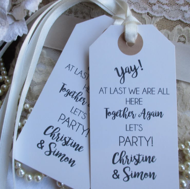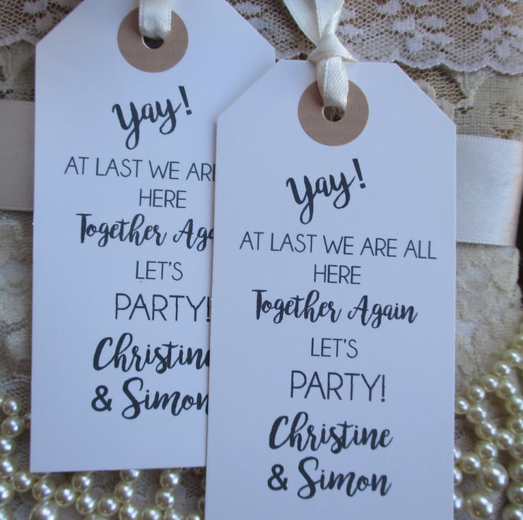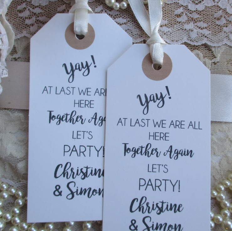Unique tags- a perfect fun favour to celebrate being able to be out,out for a meet up for any special family party occasion or missed event.