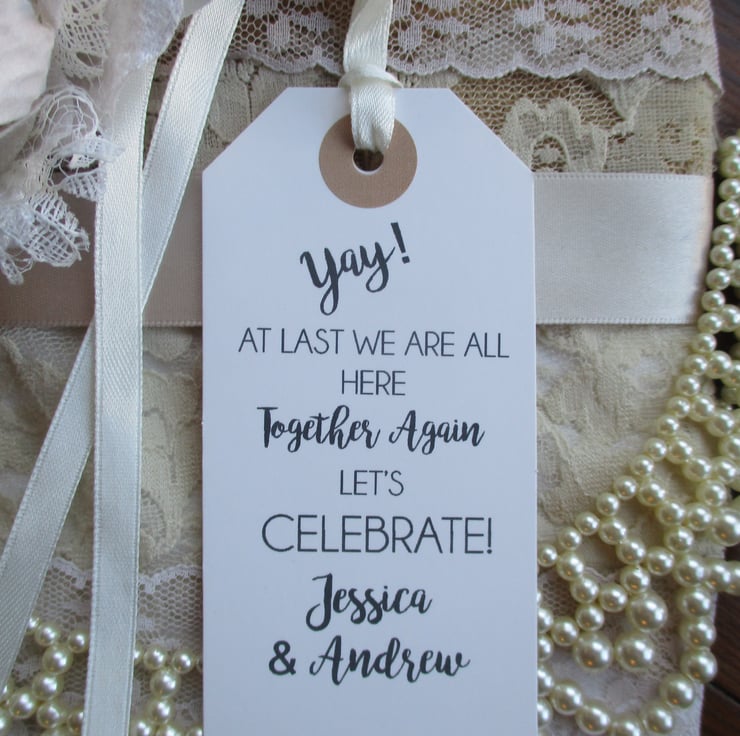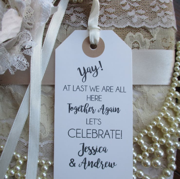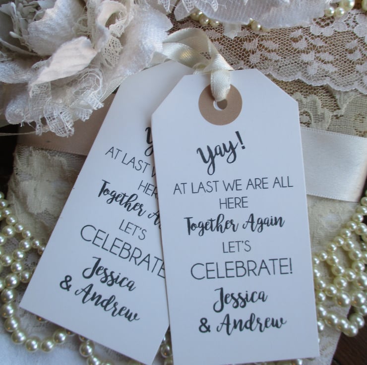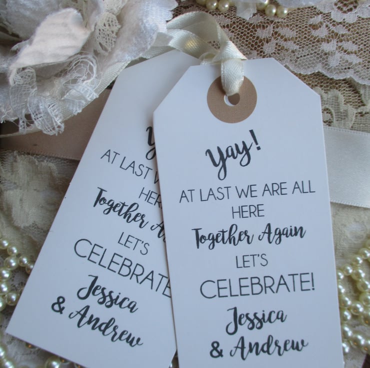 Unique tags- a perfect fun favour to celebrate being able to be out,out for a meet up for any special family party occasion or missed event.
