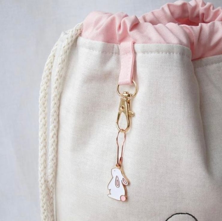 Your box will also include the bunny stitch marker seen on the bag, a matching lavender sachet, and some tea!