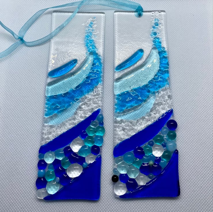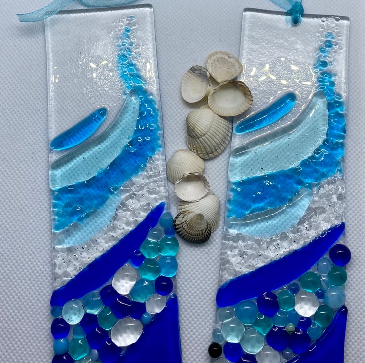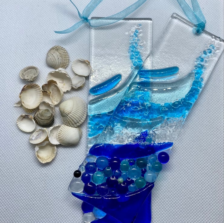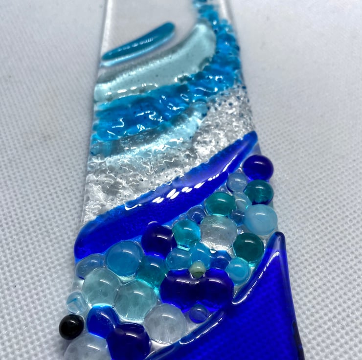 Gorgeous shades of blue have been used on this light-catcher and different textures create the effect of the rolling wave.