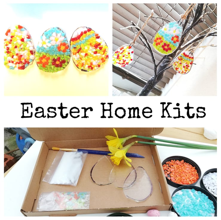 This Fused Glass Home Kits are a great way for you to have fun and then be able to gift them or keep for yourself. In the kit you receive everything you need to make 3 Fused Glass Easter Eggs. These kits are aimed at anyone from 5 to 105.