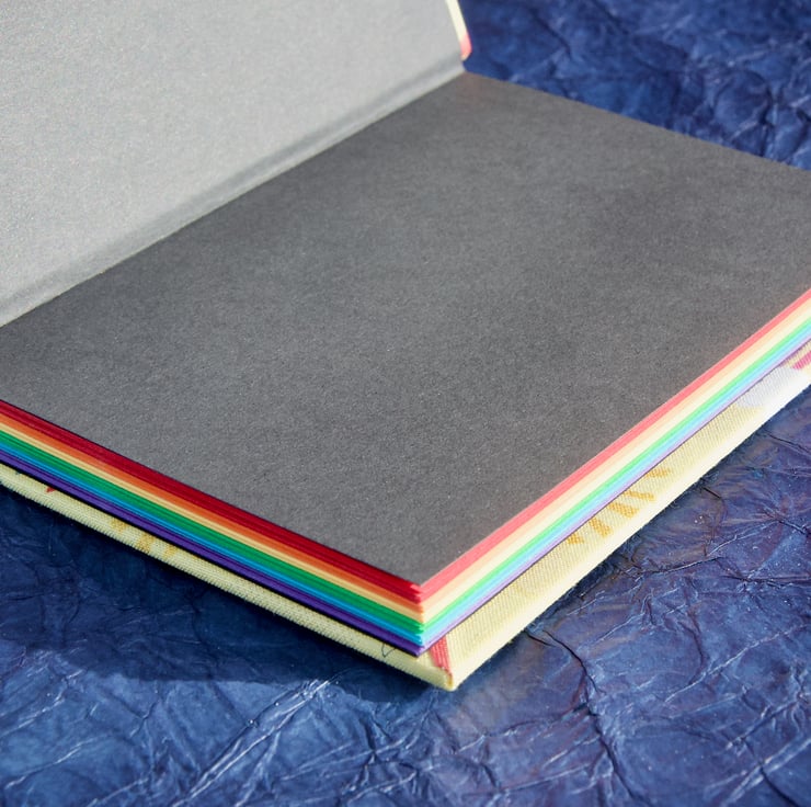 This hand-crafted book is ideal for all sorts of note-taking, list-making, journalling or creative writing. The bright sections of coloured 80gsm paper are great for organising your thoughts and ideas.