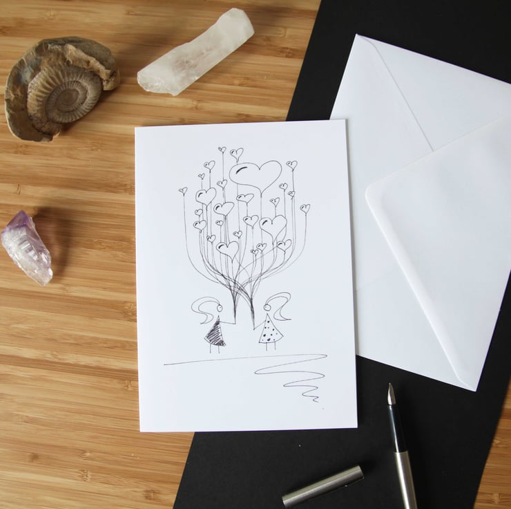 As I'm part of the lgbtq community, I wanted to create a range of cards suitable for all couples. So therefore I continued my cartoon range for heterosexual couples, but also same sex couples too with using the same designs. So you can find this design with two girls, two boys and a boy and a girl.