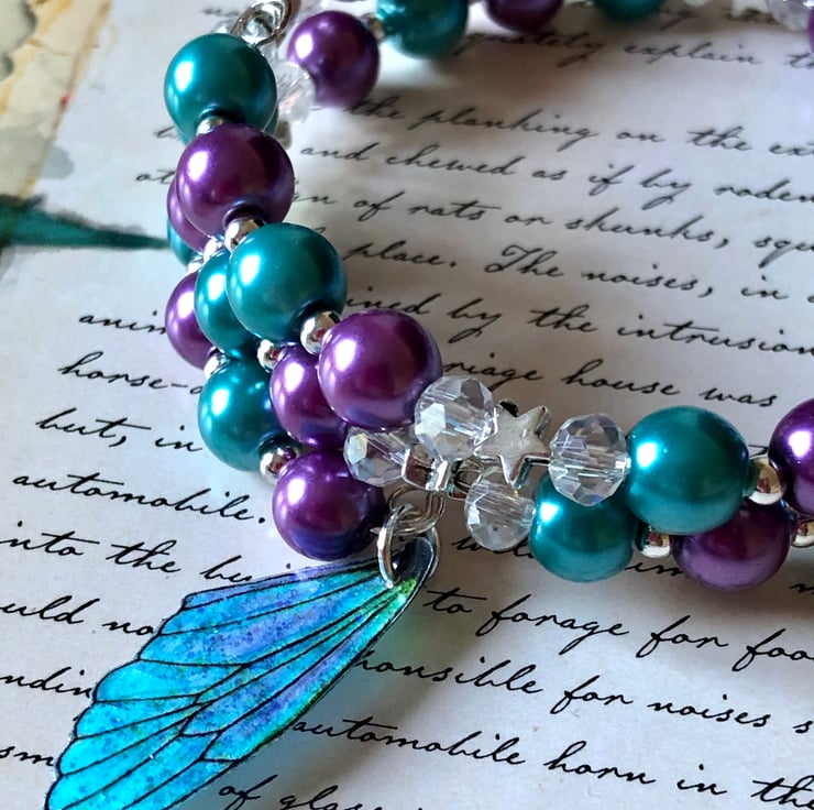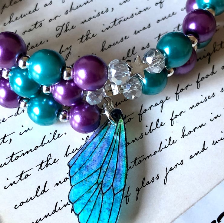 I have attached one of my sparkling blue and purple fairy wings to the end of the bracelet.