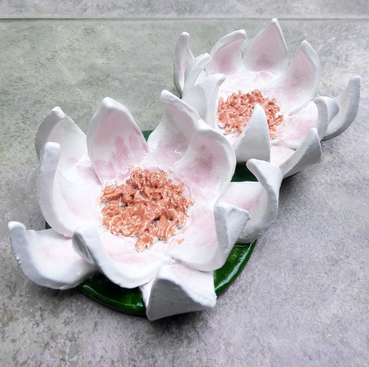 Handmade Ceramic Waterlilies or Lotus Flower Ornament