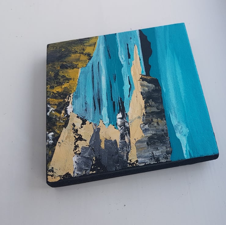 Each original painting is just 10 cm x 10 cm on wood signed at the back and has a hook for hanging on the wall.