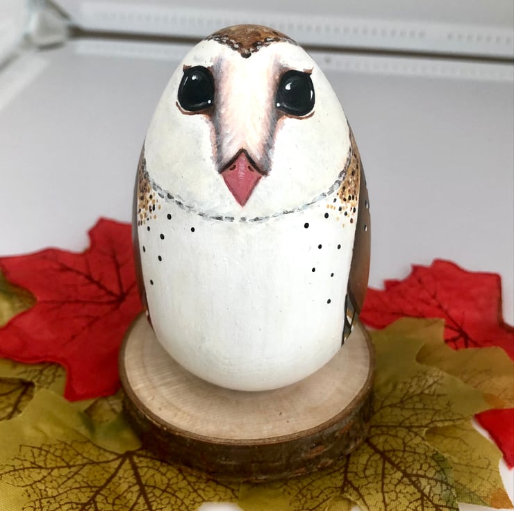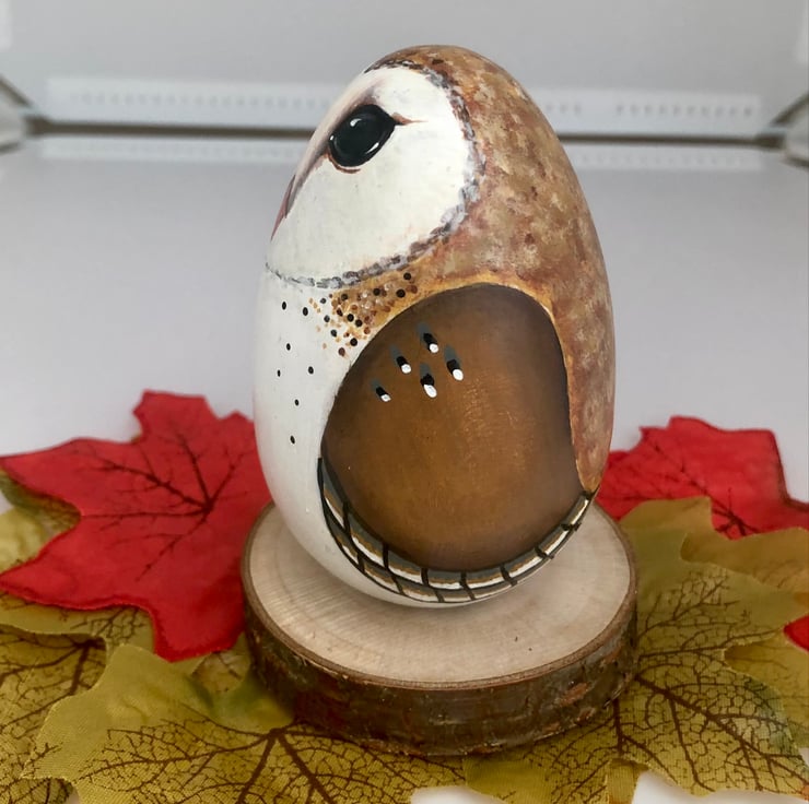 This listing is for a Barn owl who has been hand painted on to a solid hard wood egg.