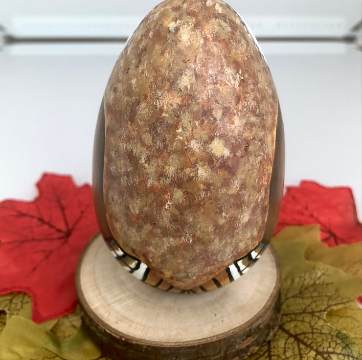 The wooden egg has a flat base which makes it easy to display.