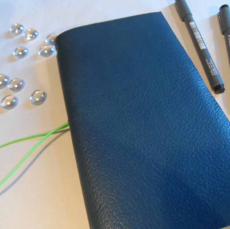 This is a handmade standard size Midori style travellers notebook with 3 removable booklets. The booklets are all held in with looped elastic and can be replaced in seconds.