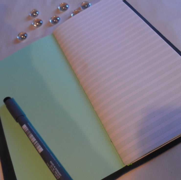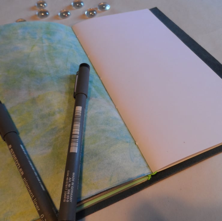 Booklet 3 - hand painted double sided cover in abstract blue / green pattern. Plain white paper pages inside.