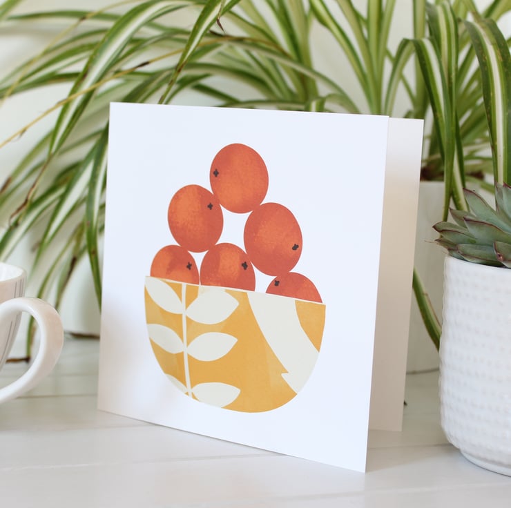 A blank greetings card featuring my Orange Bowl illustration.