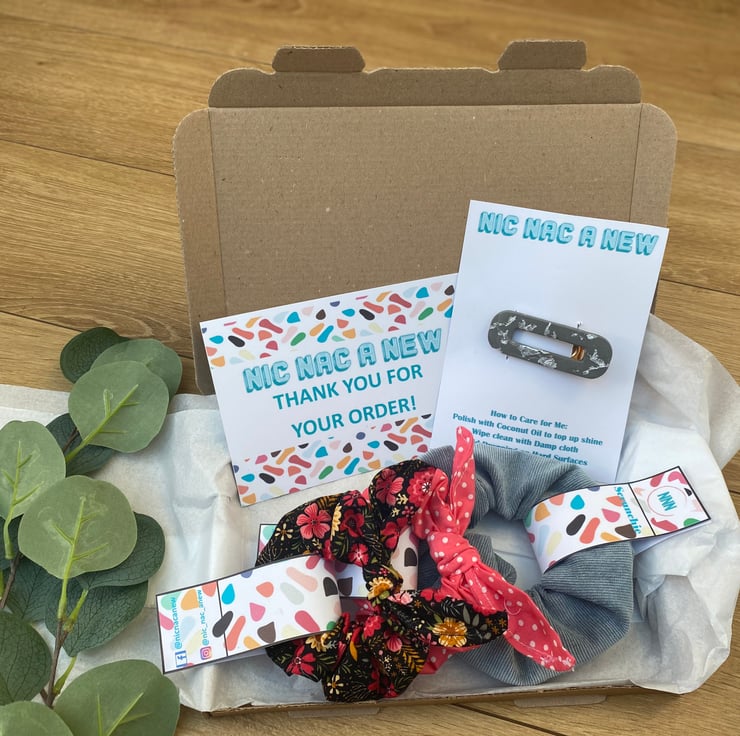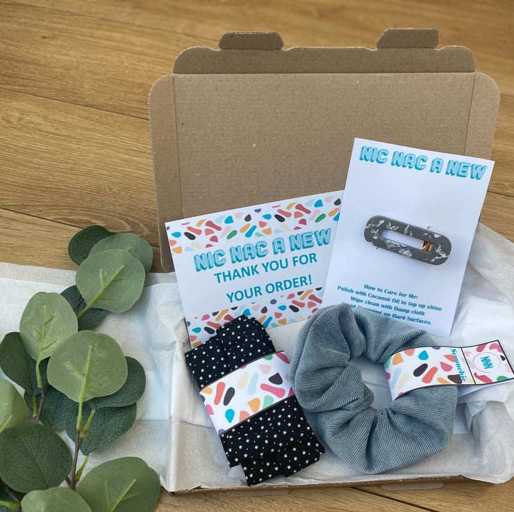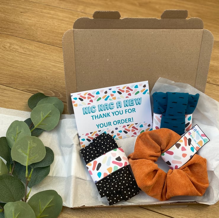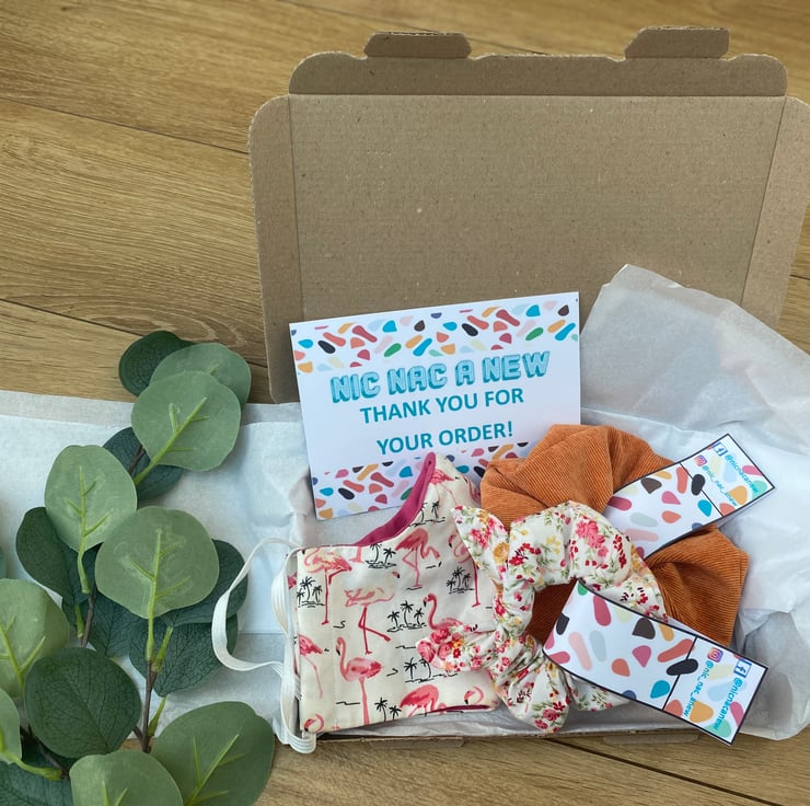 A Mystery Box with either Scrunchies, Headbands, Hair Clips or Face Coverings.