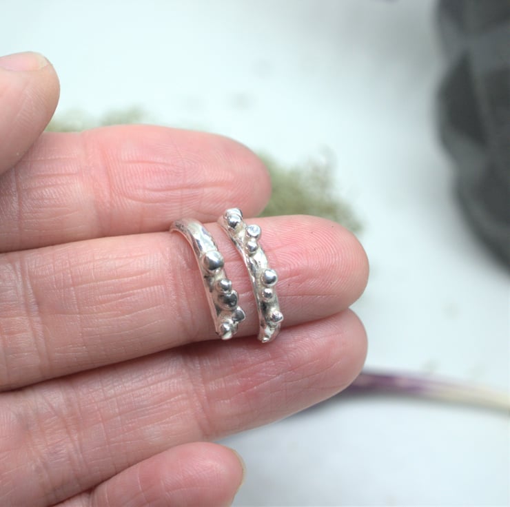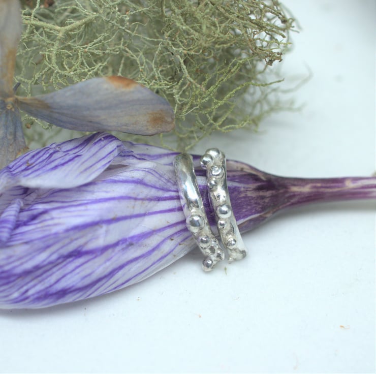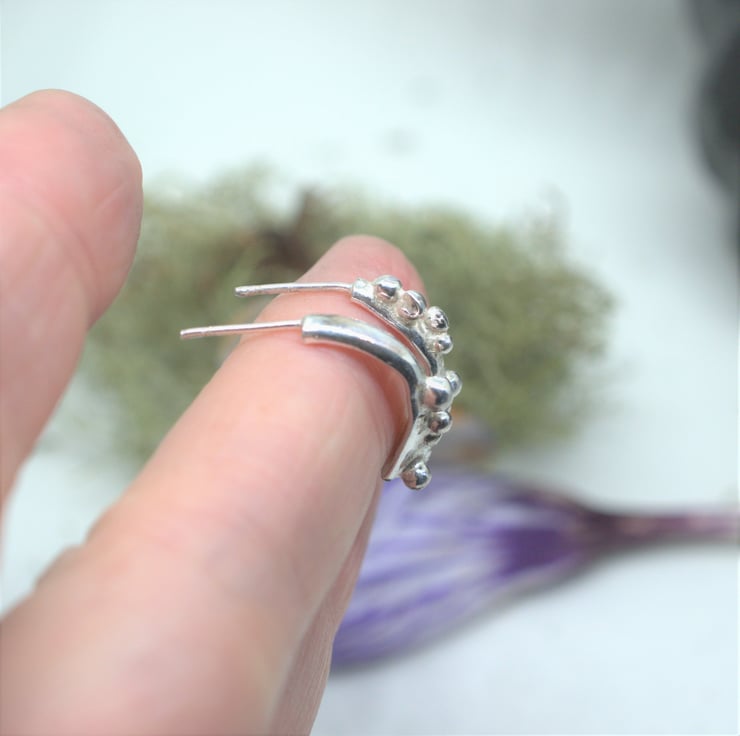 Granulated balls of eco silver, soldered onto 2.3mm half hoops.