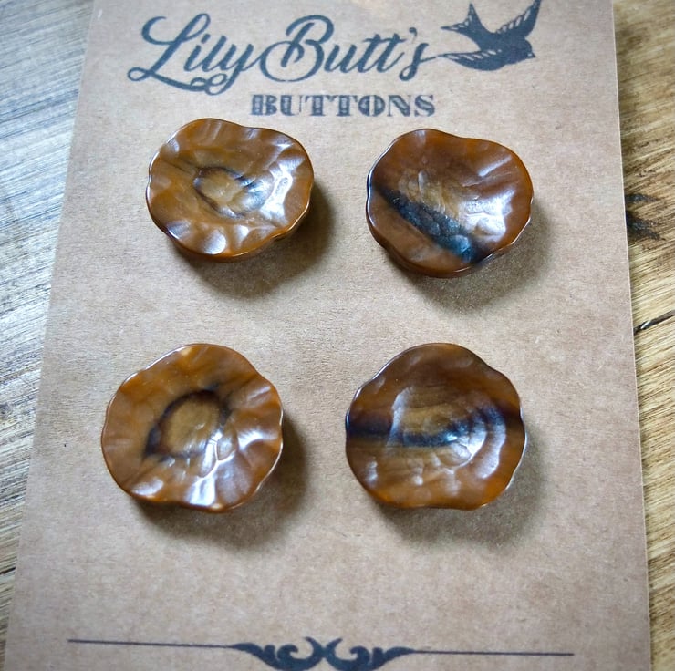 4 gorgeous vintage buttons, these are made of some sort of resin, but look like real wood, 30mm.