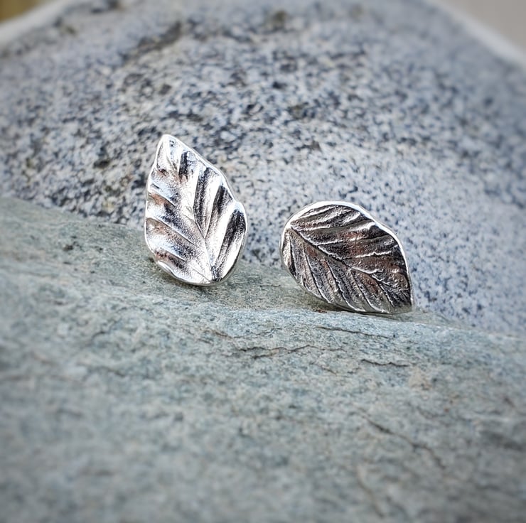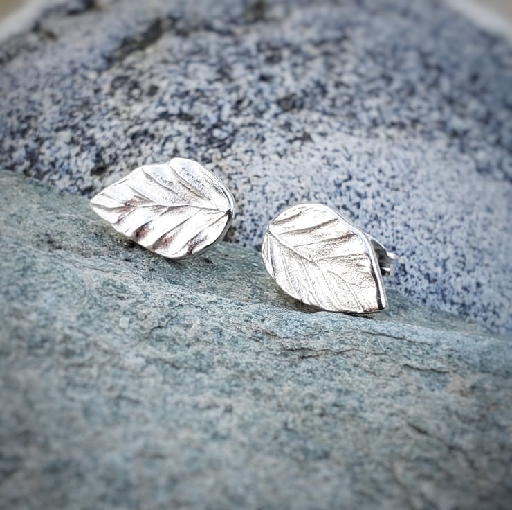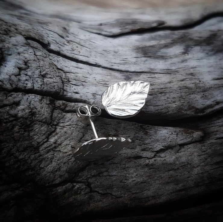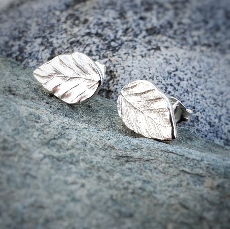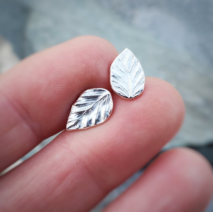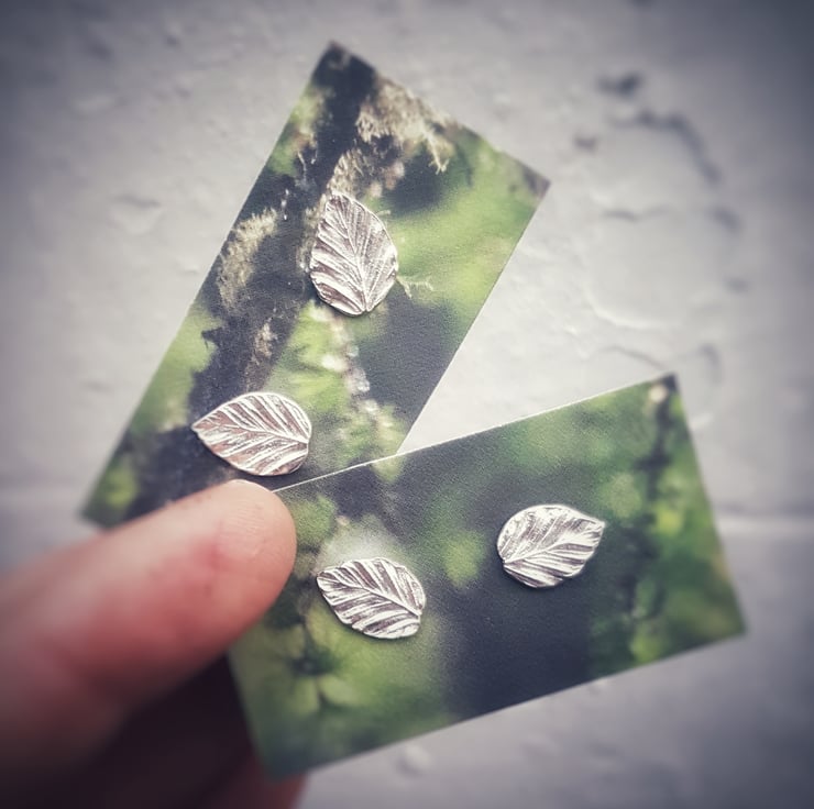 These beautiful tiny beech leaves are solid fine silver, cast from tiny real ones.